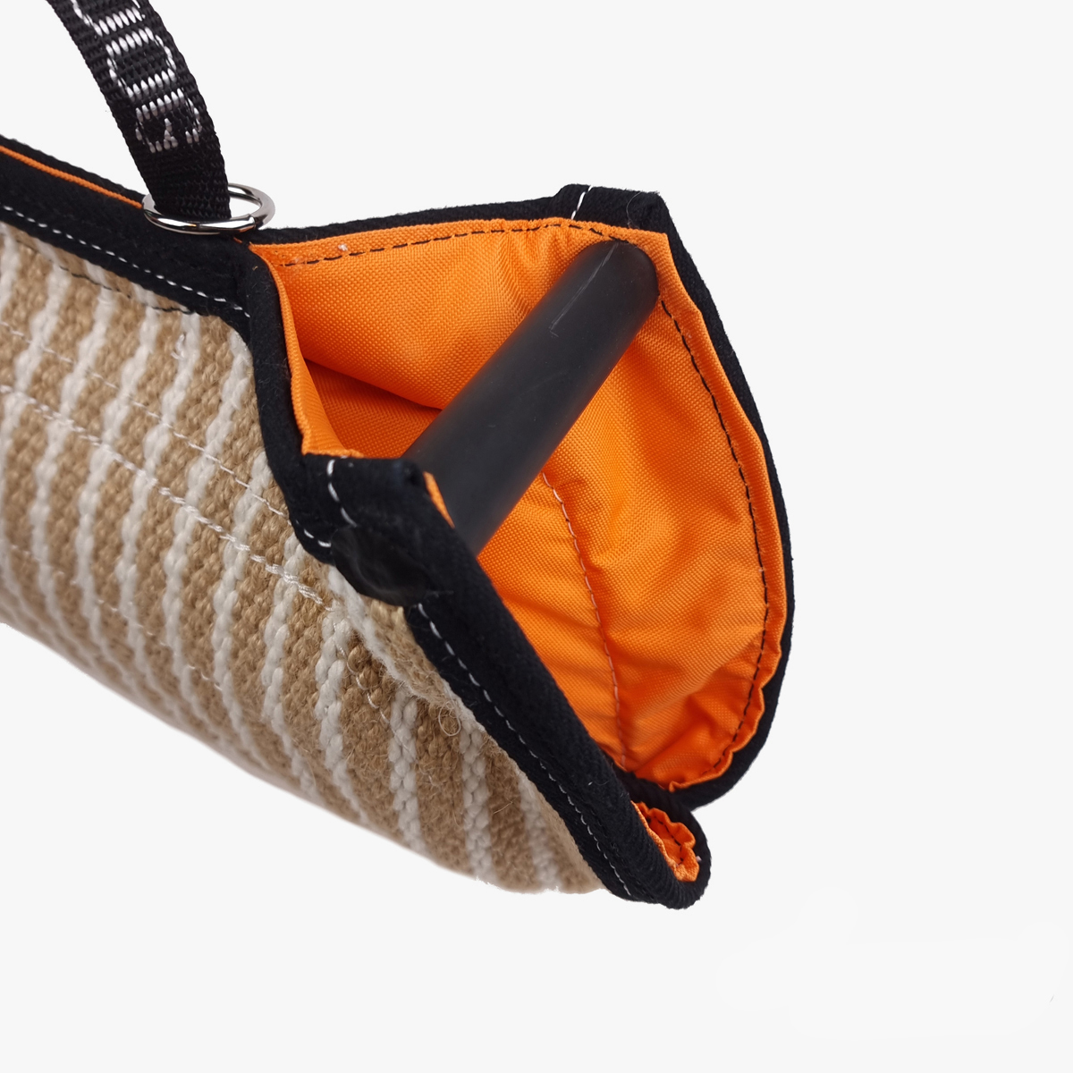 Klin z dwoma uchwytami wykonany z juty, mocnego i trwałego materiału, pozwala psu na wbicie się zębami głęboko bez ryzyka uszkodzenia kłów. Drewniane uchwyty pokryte zostały termokurczliwą taśmą, dzięki czemu klin leży pewnie w dłoni. Dodatkowo wyposażony w metalowe kółko pozwalające przypiąć smycz lub linkę. Stosowany w nauce gryzienia oraz przy pracy nad prawidłowym chwytem psa.