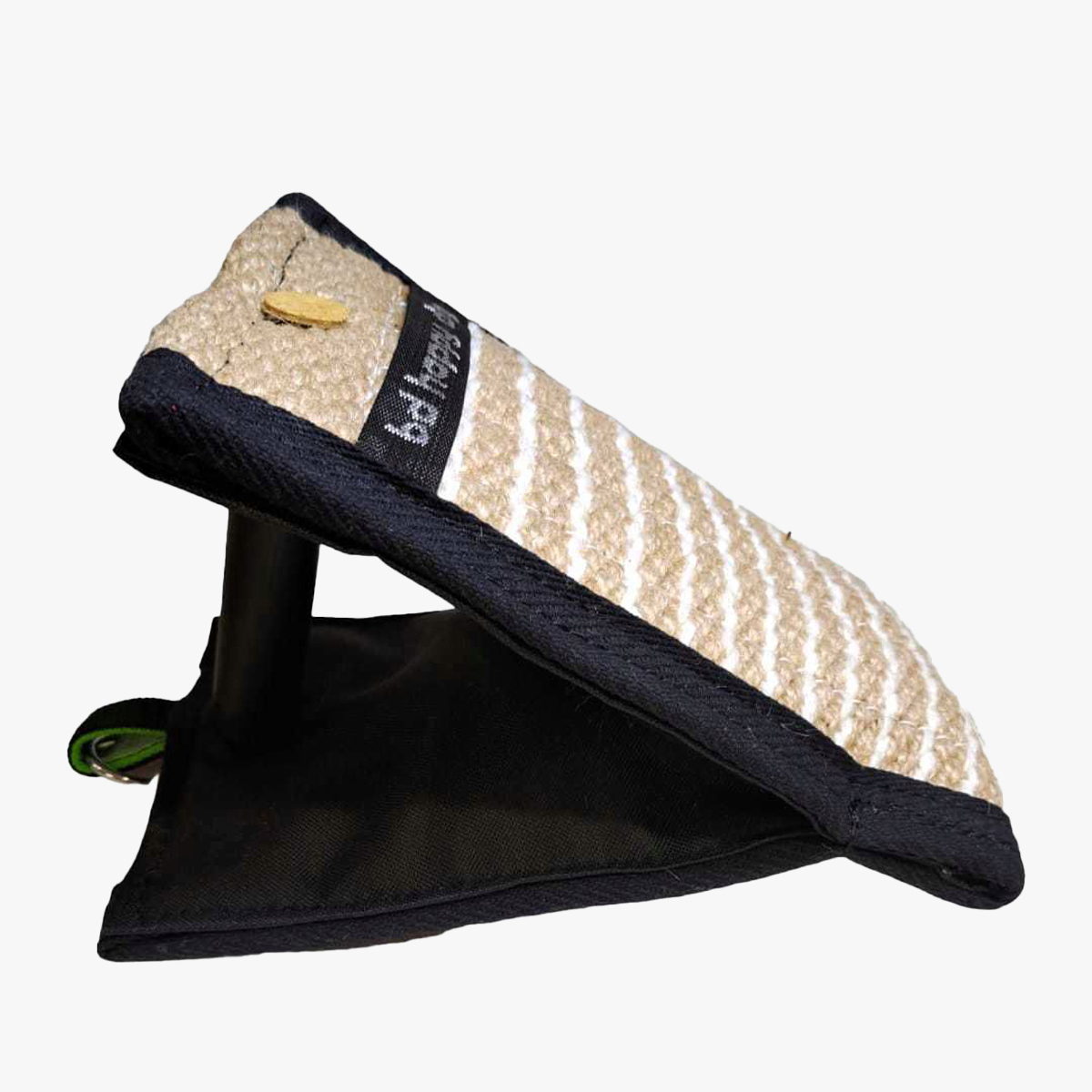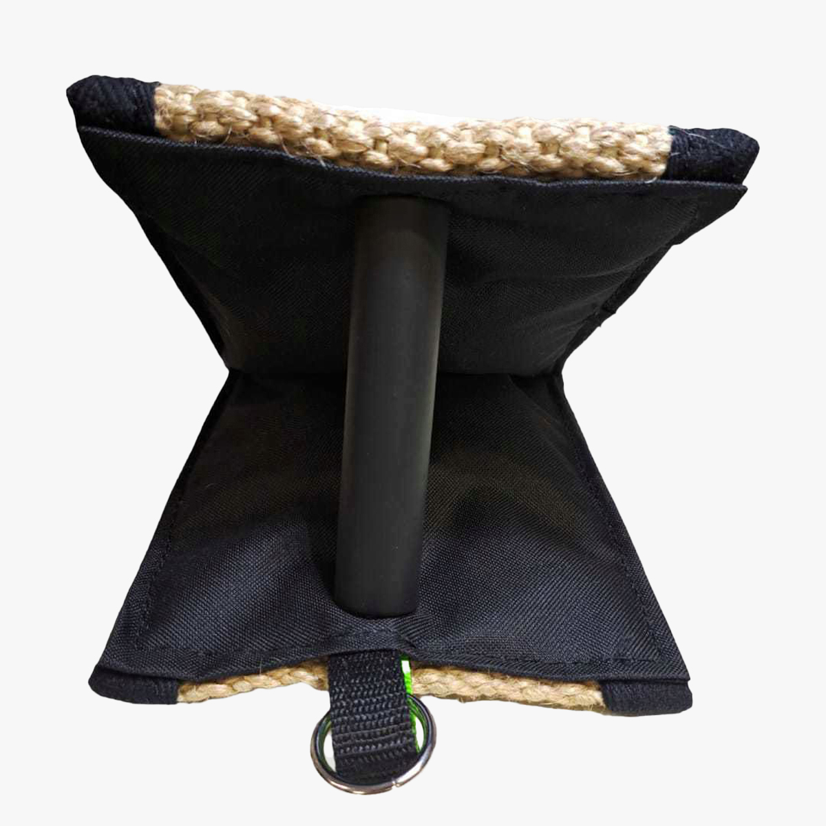 Klin z juty, mocnego i trwałego materiału, dzięki swoim właściwościom pozwala psu na wbicie się zębami głęboko bez ryzyka uszkodzenia kłów. Drewniane uchwyty pokryte zostały termokurczliwą taśmą, dzięki czemu klin leży pewnie w dłoni. Klin znajdzie swoje zastosowanie w nauce gryzienia oraz przy pracy nad prawidłowym chwytem psa.