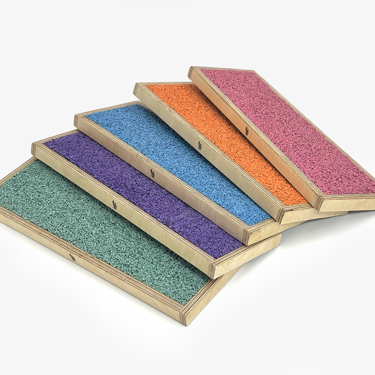Dostępne kolory tartanu: fioletowy, różowy, niebieski, pomarańczowy, turkusowy.