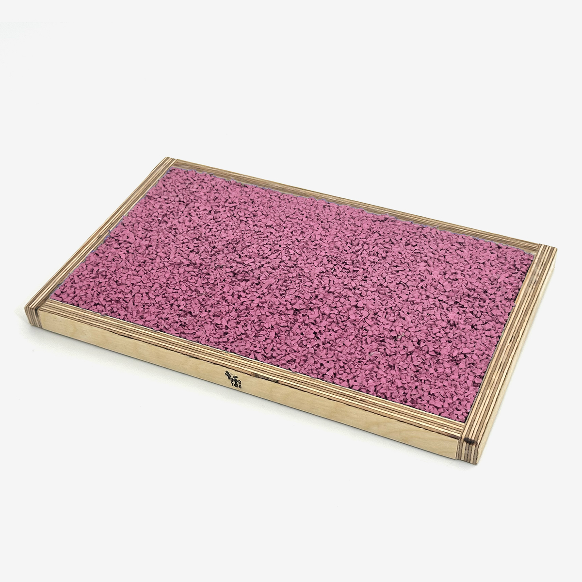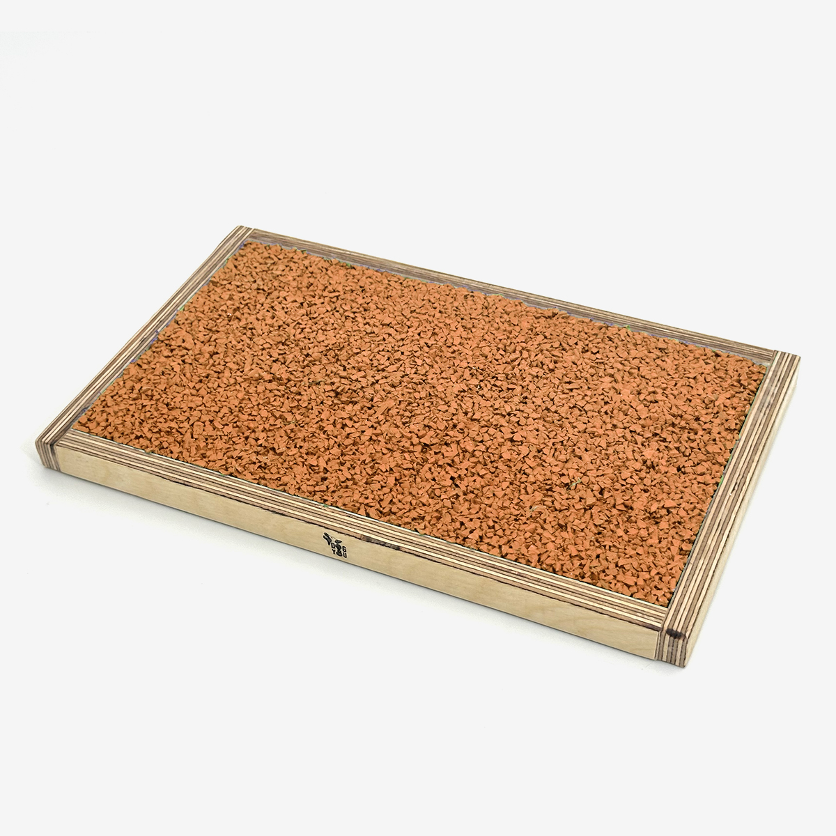 Target podest dla psa zrobiony z wodoodpornej sklejki i kolorowego tartanu.