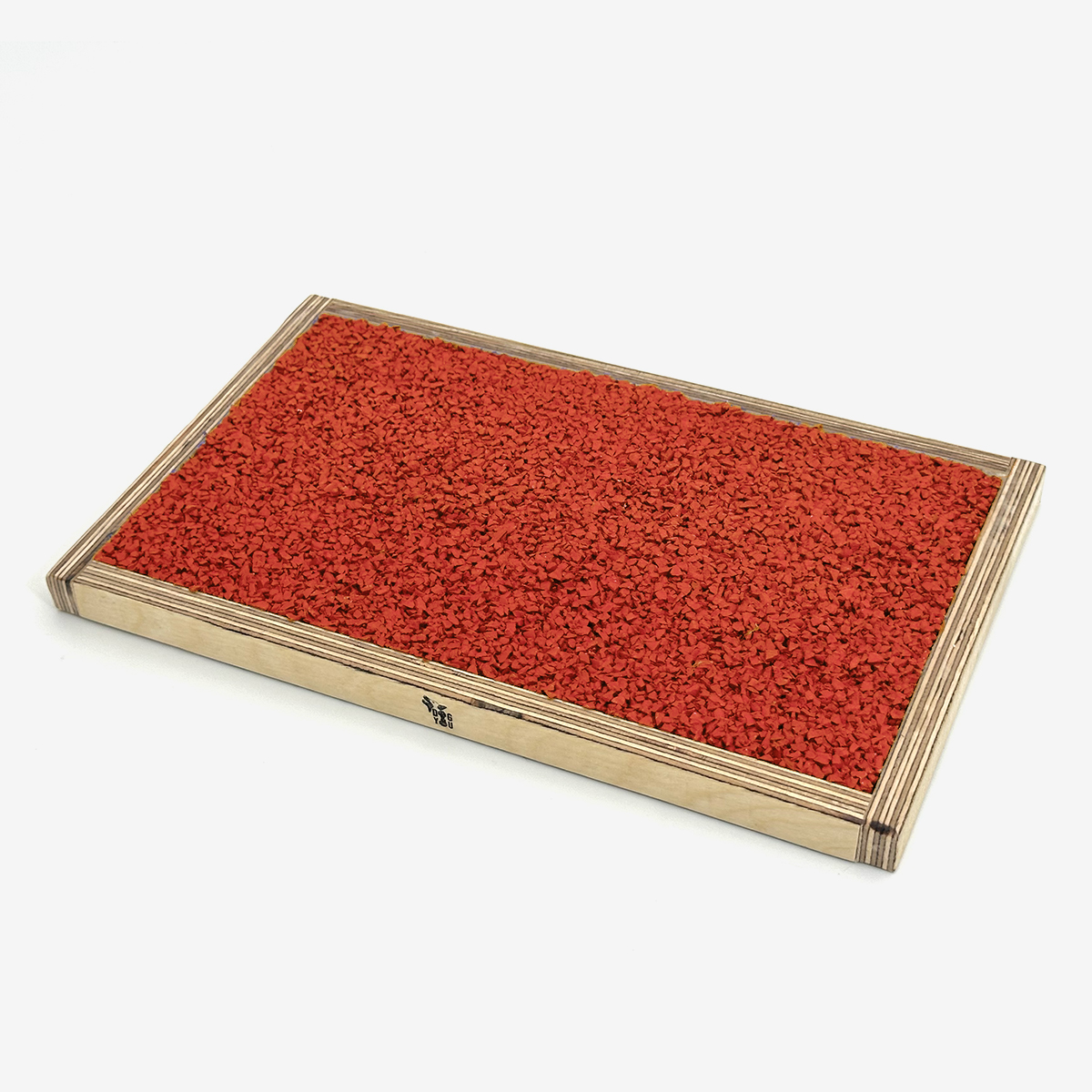 Podest jest bezpieczny w użytkowaniu. Wykonany z dbałością o najmniejsze detale. Dzięki stabilnej konstrukcji nie przewraca się nawet podczas intensywnych ćwiczeń. Wykończony grubą warstwą tartanu, który charakteryzuje się doskonałymi właściwościami antypoślizgowymi i amortyzującymi.