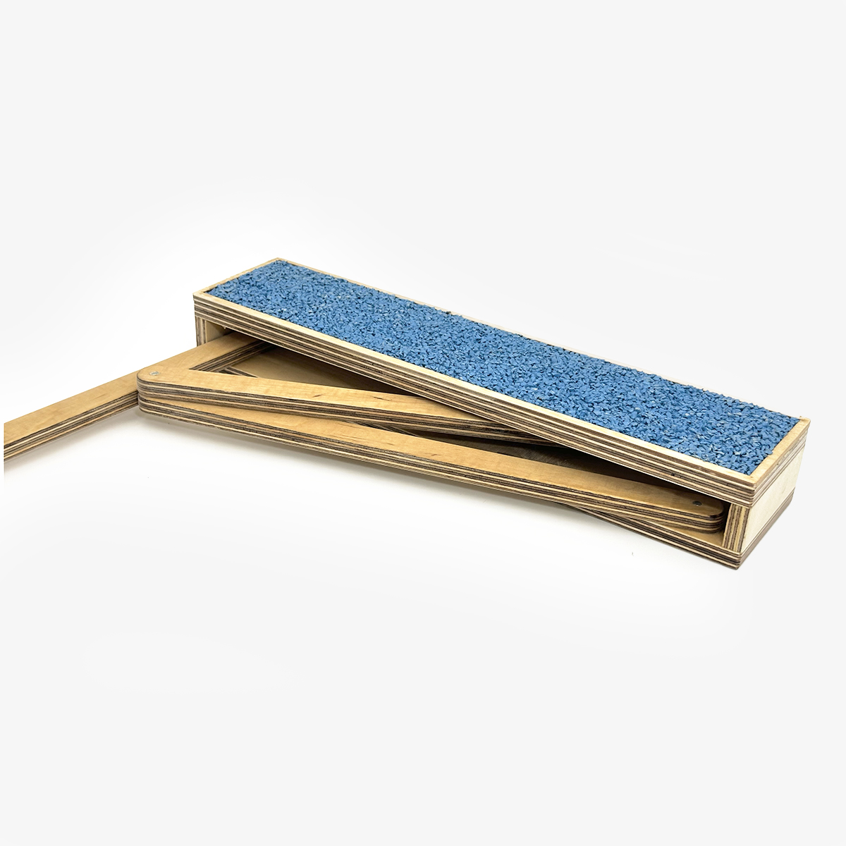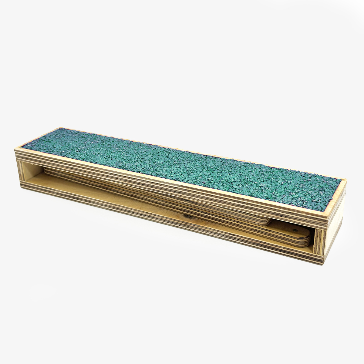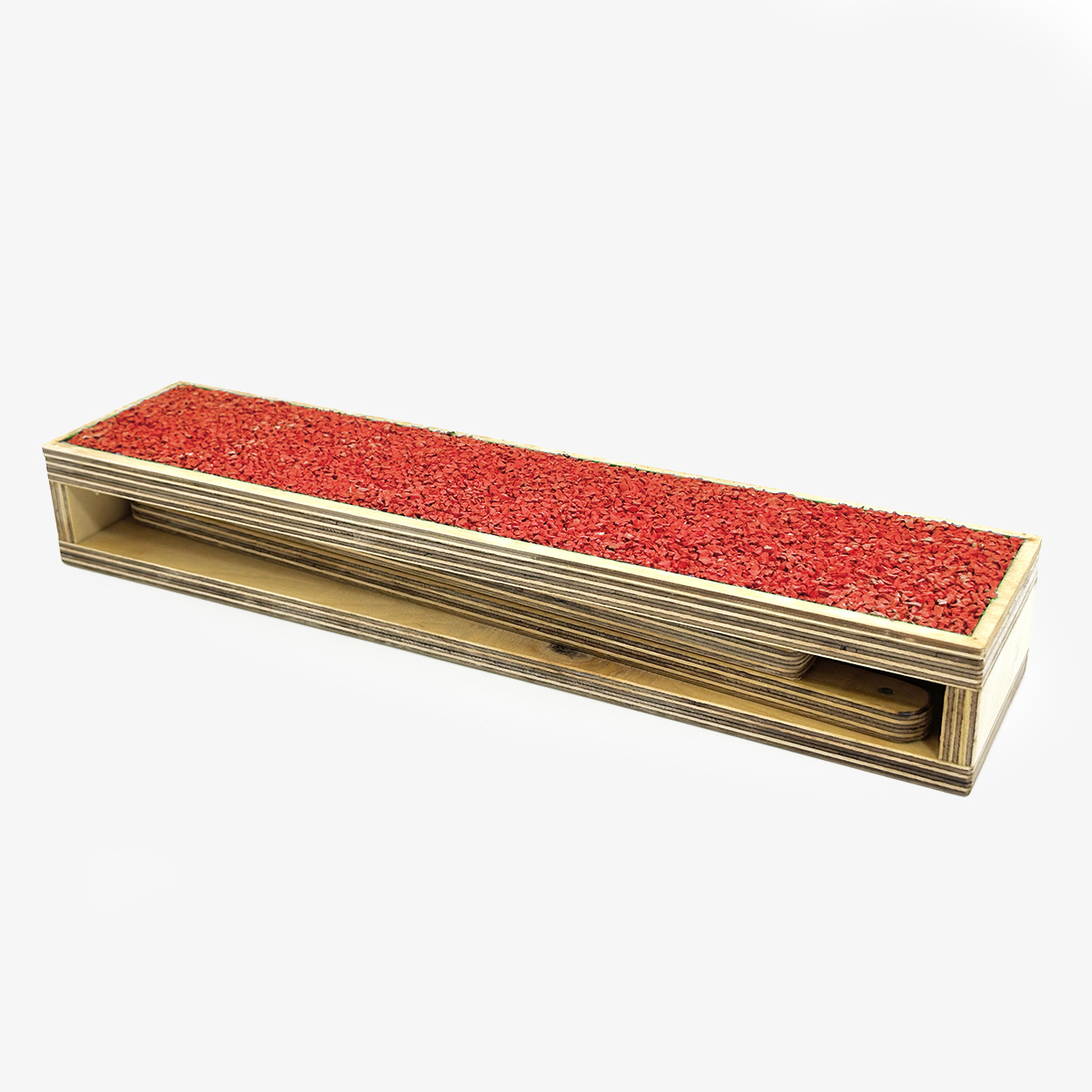 Podest jest bezpieczny w użytkowaniu. Wykonany z dbałością o najmniejsze detale. Dzięki stabilnej konstrukcji nie przewraca się nawet podczas intensywnych ćwiczeń. Wykończony grubą warstwą tartanu, który charakteryzuje się doskonałymi właściwościami antypoślizgowymi i amortyzującymi.