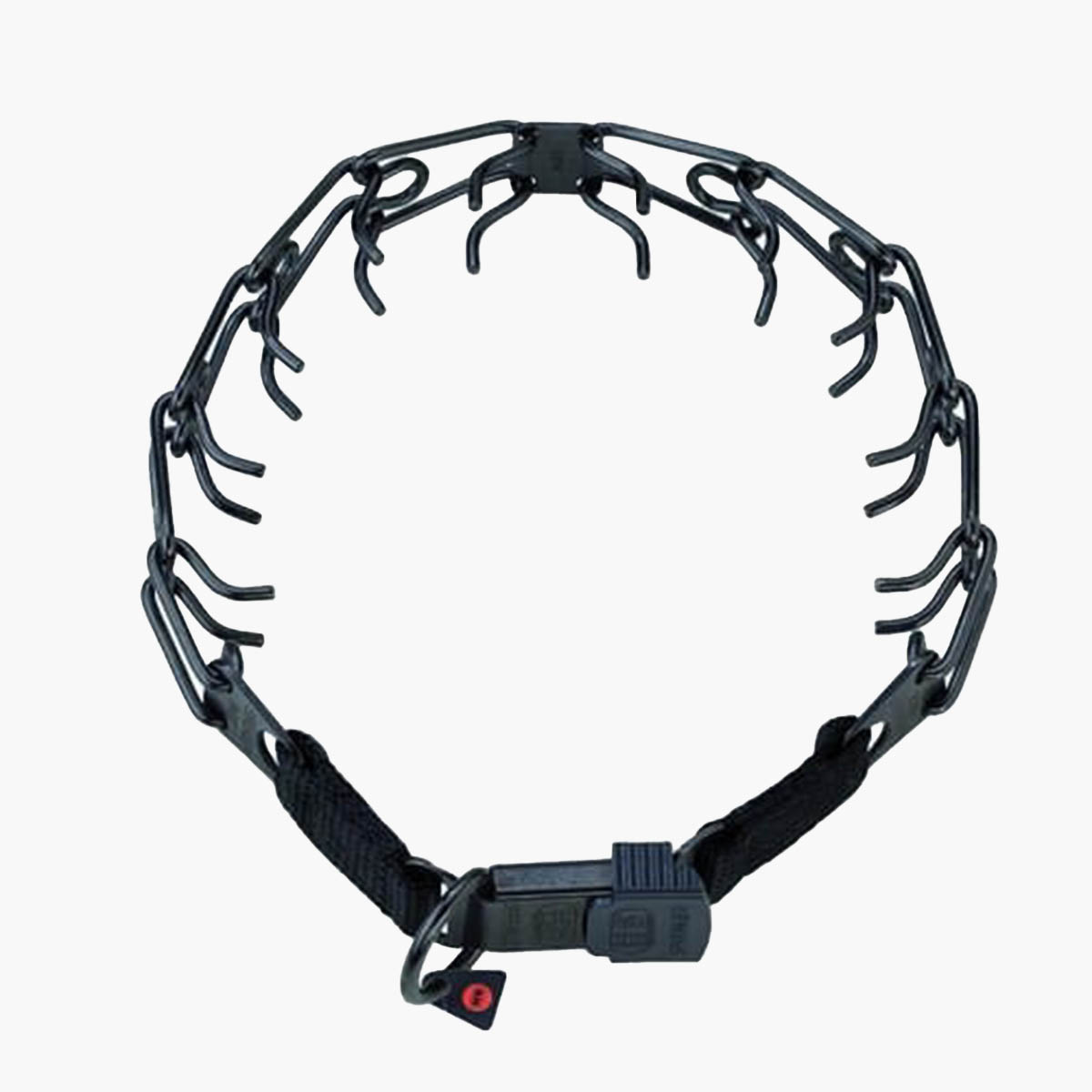 Kolczatka treningowa dla psa ULTRA PLUS z wysokiej jakości stali nierdzewnej w kolorze czarnym. Łatwe i szybkie zakładanie dzięki zamknięciu ClicLock. Wszystkie ogniwa są zaokrąglone dla zapewnienia maksymalnego komfortu.