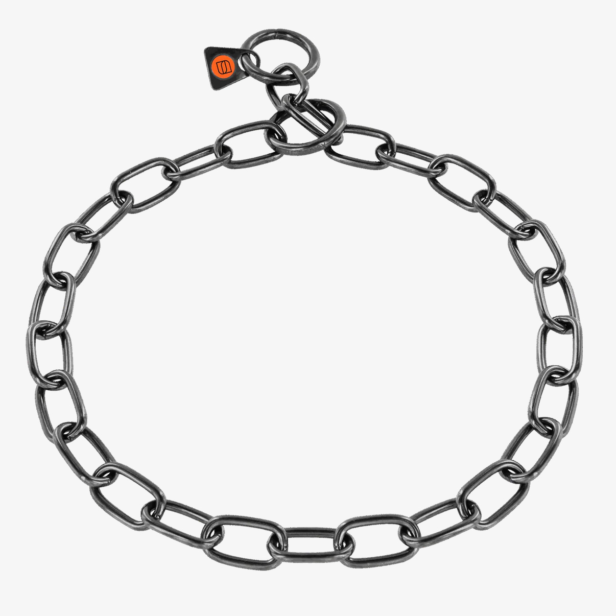 Łańcuszek dla psa z wysokiej jakości stali nierdzewnej w kolorze czarnym. Nadaje się do każdego rodzaju i długości sierści. Idealny do profesjonalnej pracy z psami.