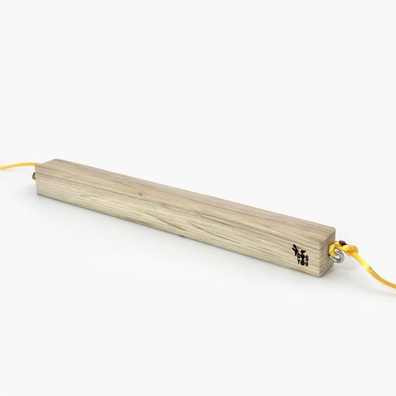 Wykonany z twardego drewna bukowego. Doczepione sznurki mają długość ok. 30 cm i są dostępne w dwóch grubościach.