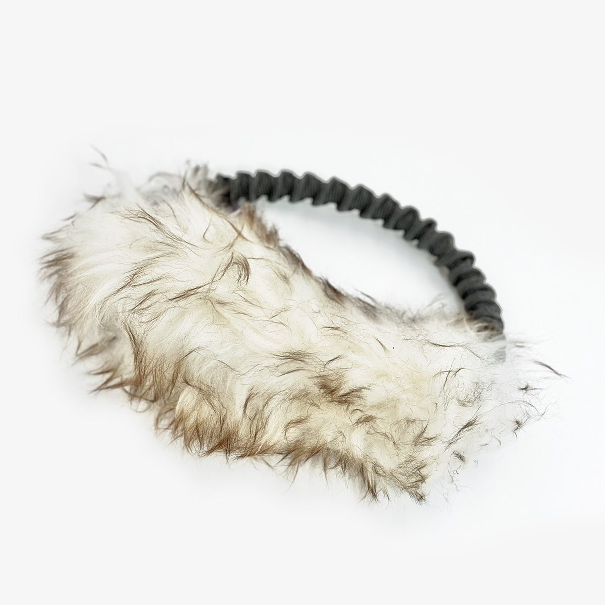 Szarpak wykonany jest z naturalnego, owczego futra oraz miękkiej taśmy.
