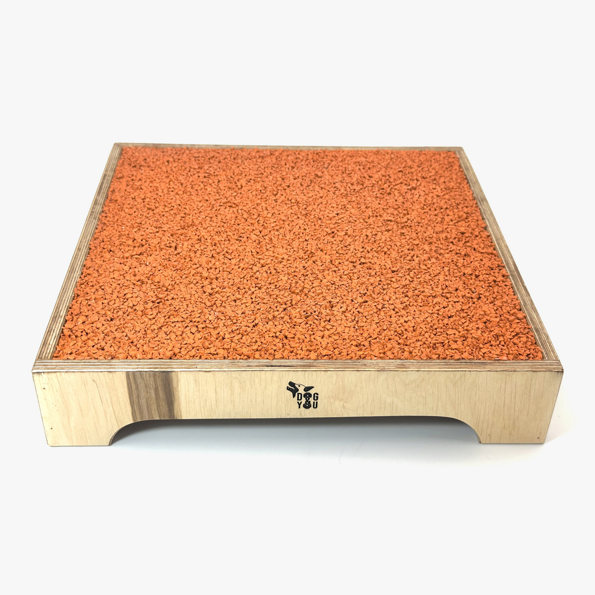 Podest jest bezpieczny w użytkowaniu. Wykonany z dbałością o najmniejsze detale. Dzięki stabilnej konstrukcji nie przewraca się nawet podczas intensywnych ćwiczeń. Wykończony grubą warstwą tartanu, który charakteryzuje się doskonałymi właściwościami antypoślizgowymi i amortyzującymi.